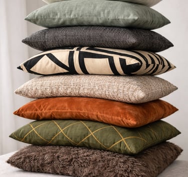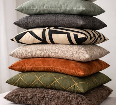 Confecionamos cortinas, almofadas, colchas, toalhas e peças têxteis por medida.